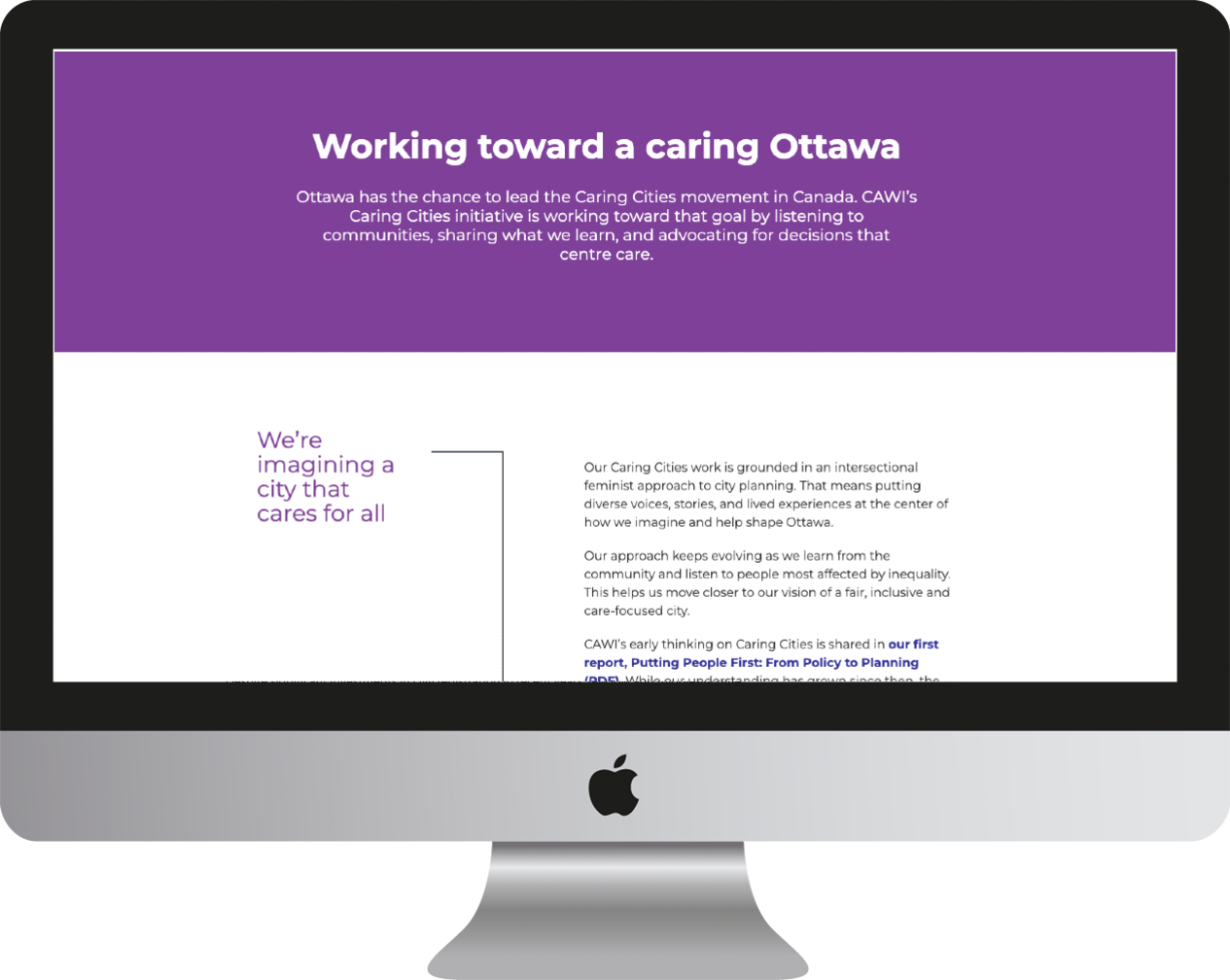 CAWI wanted to create a new section of their website to educate local communities on the concept of caring cities and the practice of creating them.