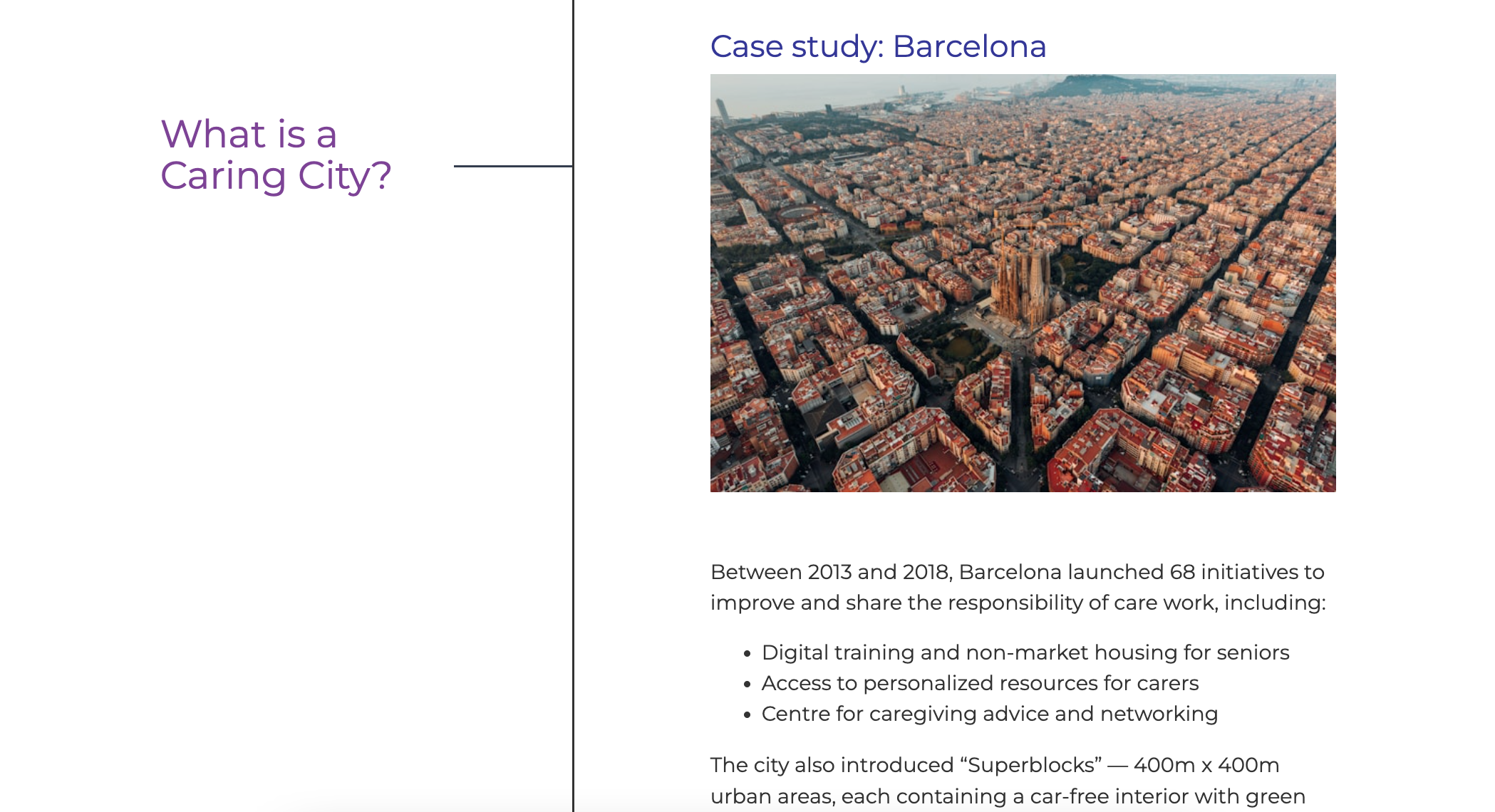 The tone balances clarity with warmth and optimism. I used inclusive, human language to create a sense of shared purpose — for example, framing ideas around “our city” and using relatable examples of care in everyday life — while grounding key messages in research to maintain credibility.